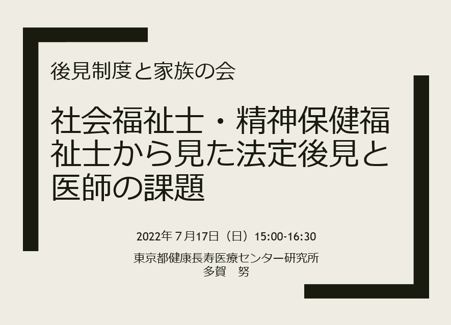 社会福祉士・精神保健福祉士 多賀努氏(応援会員)の講演会です。